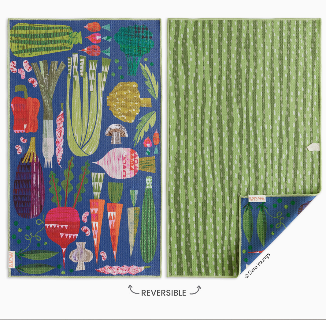 Double sided, Flower inspired, Artist designed, Microfiber kitchen towels. So pretty, So Practical. Eco-friendly. Made from 6 recycled plastic water bottles. Ultra absorbent and fast drying. 3x more absorbent than cotton and dries 5x faster. High performance waffle weave. 18” W x 30” H towel. Full coverage print on both sides. Loop for hanging.